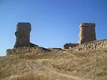 - Castillo de Palenzuela: en ruina progresiva. Formaba un triángulo con torres en sus vértices. Construido en mampostería en el siglo XI, la piedra exterior ya no se conserva y las torres se mantienen en pie por el relleno de sus muros en adobe.