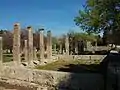 En la esquina noreste hay una estancia que se ha identificado como un baño. En ella se encontró un depósito de 4 metros cuadrados de superficie y 1.38 metros de profundidad, revestido de ladrillos y datado de la época romana. Estaba destinado a los baños de agua fría de los atletas.