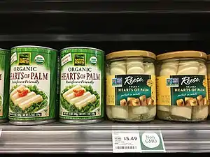 Dada la dificultad de obtener el palmito fresco, se suele expender enlatado macerado en salmuera.