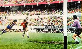 Promediaba el segundo tiempo del encuentro, cuando el lateral derecho uruguayo centralista, José Jorge González, envió un potente centro desde la derecha. Poy se zambulló "en palomita", ganándole al defensor rojinegro De Rienzo, e impactó el balón con la frente de su cabeza, para vencer al arquero Carlos Fenoy y marcar el 1 a 0 final.