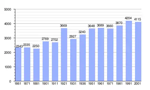 Gráfica de evolución demográfica de Palomonte entre 1861 y 2001 |