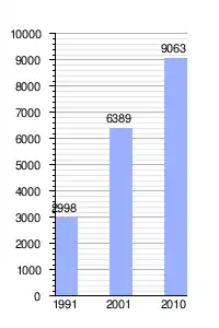 Variación intercensal | + 41,9 % (2001 - 2010) | |