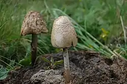 ![]() Cuerpo fructífero del hongo creciendo sobre el estiércol de una vaca, quebrada Rurec, Áncash, Perú | ||