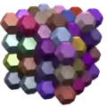 - celdas no convexas que se empaquetan sin sobreponerse, entre los que se incluye el pequeño dodecaedro rómbico estrellado como en los cubos de Yoshimoto.