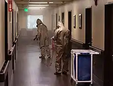 ![]() La Guardia Nacional de los Estados Unidos realizan una desinfección a los hogares del condado de Limestone, 30 de abril de 2020. | ||