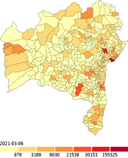 El primer caso de la pandemia de enfermedad por coronavirus en Bahía, estado de Brasil, inició el 6 de marzo de 2020. Hay 149.109 casos confirmados y 3.227 fallecidos.[1]