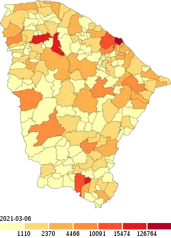 El primer caso de la pandemia de enfermedad por coronavirus en Ceará, estado de Brasil, inició el 15 de marzo de 2020. Hay 162.429 casos confirmados y 7.509 fallecidos.[1]