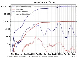 - «Lebanon COVID - Coronavirus Statistics - Worldometer». www.worldometers.info (en inglés). Consultado el 21 de febrero de 2022.