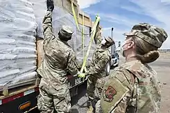 ![]() La Guardia Nacional de los Estados Unidos despachando suministros para Nuevo México, 14 de mayo | ||