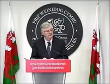 Mark Drakeford, Primer Ministro del Gobierno de Gales (izquierda) da una conferencia de prensa; mayo de 2021.