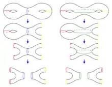 - Tómese una curva en la descomposición en una esfera de cuatro orificios y reemplácese por una curva en la esfera que la interseca solo dos veces.