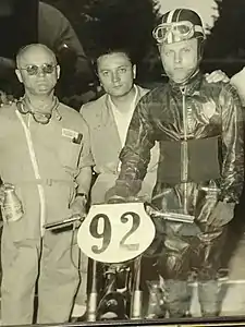 El hijo inicia su carrera en 1946 y compitió con motos de todas las marcas y de todas las cilindradas,[3] desde 50 a 500 cm³, compitiendo en diferentes circuitos incluso en varias categorías en el mismo evento de automovilismo. Casi siempre sus motos eran privadas y, sobre todo, puestas a punto por él mismo. En su larga carrera, corrió durante tres años en sidecar, con Roman Luigi Marcelli como compañero, más conocido como Giggi er Lungo, así como también en motocross y trial. En 1952, con una Gilera Saturno 500, consigue la segunda categoría del Campeonato italiano de 1952 de 500cc.[3]