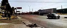 En el transporte terrestre se destacan la Carretera Federal Puebla-Tlaxcala y Puebla-Santa Ana Chiahutempan, la cual permiten a la ciudad comunicarse rápidamente con su capital estatal y con la ciudad de Puebla de Zaragoza. También es destacable su cercanía con el Periférico de la Ciudad de Puebla que se encuentra a tan solo 3 kilómetros. Por otra parte el tráfico vehicular interno es cubierto principalmente por un eje central conformado por la Avenidas: General Máximo Rojas, Progreso y Libertad. Este eje cruza la ciudad de norte a sur pasando por la plaza central. También son importantes las avenidas Insurgentes, Cañada Morelos, Industrias Oriente-Poniente y Tenantitla-Xaltipa.