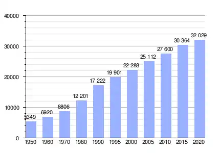 Población municipal (1950-2015) según el Cuaderno estadístico municipal y estimaciones del Observatorio Urbano Metropolitano.[20][21] |