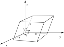 Un parámetro de red es una distancia o un ángulo que define geométricamente a la celda unitaria con respecto a su estructura cristalina. La celda unitaria queda definida por seis parámetros: la longitud de tres aristas a, b y c; y tres ángulos interaxiales α, β y γ.[1] Los parámetros de red pueden ser medidos mediante difracción por rayos X.