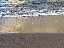 Playa muy larga, a mar abierto, de arena fina, color gris. El agua es templada de color azul verde, oleaje moderado y poco profunda hasta 100 m mar adentro. En los períodos vacacionales es bastante concurrida, principalmente en Semana Santa.[4]