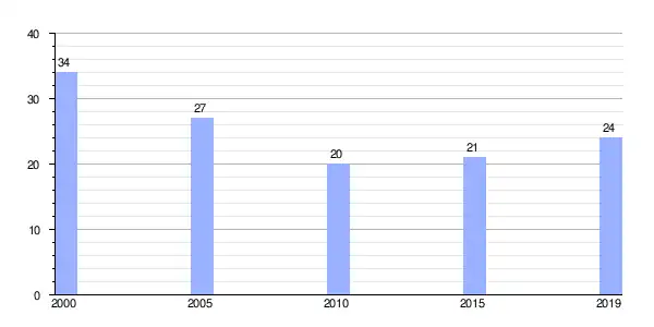 Gráfica de evolución demográfica de Parada entre 2000 y 2019 |