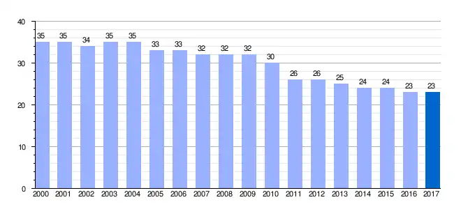 Gráfica de evolución demográfica de Paradinas de Abajo[1] entre 2000 y 2017 |