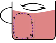 Aun así, cerca de los bordes inferior y exterior el líquido se retrasa por la fricción contra la taza. Allí la fuerza centrípeta es más débil y no puede vencer al gradiente de presión, así que estas diferencias de presión devienen más importantes para el flujo de agua. Esto determina una capa límite o más específicamente una capa de Ekman.[5]