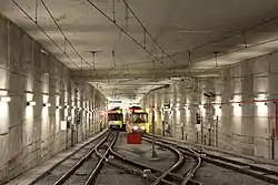 ![]() Trenes estacionados en ambos andenes | ||||||||||||||||||||||||||||||