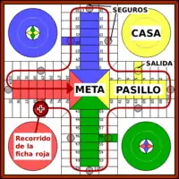 - Las fichas se mueven en sentido contrario a las agujas del reloj desde la salida de su color hasta la meta de su color. Las fichas que están en la casa y en la meta no pueden moverse.