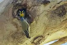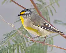 El pardalote estriado (Pardalotus striatus)[2] es una especie de ave paseriforme de la familia Pardalotidae endémica de Australia. Es un pájaro pequeño de cola corta, más fácil de oír que de ver, ya que habita en las copas de los árboles, donde es muy ruidoso mientras busca insectos y otros pequeños invertebrados para alimentarse.