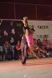 La pareja de artístico es una modalidad del patinaje artístico sobre ruedas, formada por una mujer y un hombre los cuales han de realizar una actuación de patinaje libre de forma coordinada y sincronizada con el compañero. En dependencia de la categoría y nivel irán incrementado las piruetas en dificultad, siendo las más difíciles en la categoría mayores, el vestuario de ambos debe coincidir, son imprescindibles para esta categoría, entre otros aspectos, la valentía y determinación y una alta compatibilidad entre la pareja. [1]La competición consiste en dos partes: un programa corto y un programa largo.