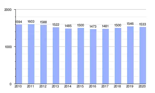 Población según el padrón municipal de 2020 del INE. Fuente Instituto Nacional de Estadística de España - Elaboración gráfica por Wikipedia |