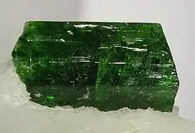 Suele encontrarse asociado a otros minerales como: diópsido, flogopita, corindón, espinela, calcita, hiperstena, augita o plagioclasa.