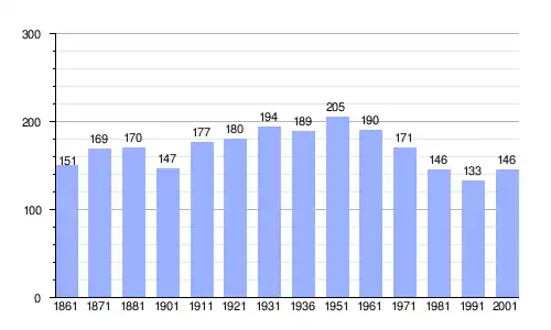 Gráfica de evolución demográfica de Parlasco entre 1861 y 2001 |