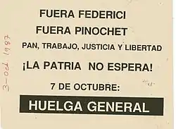 ![]() Folleto llamando a huelga general el 7 de octubre de 1987. | ||