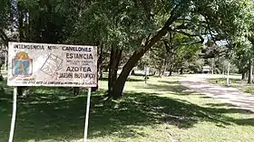 ![]() En la entrada se encuentra un cartel informativo con el texto: "Estancia Artigas Pascual 1749-1836 AZOTEA JARDÍN BOTÁNICO. Legación Dptal. ante la Comisión del Patrimonio de la Nación". | ||