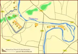- Wat Phra Sri Rattana Mahathat ("Templo de la sagrada y preciosa reliquia"), el templo está separado del río por una pared de laterita de la época del rey Ram Khamhaeng (siglo XIII).