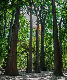 - Bosque Frondoso:E un gran área repleta de grandes árboles con liana, epifitas, musgos y liquines que hacen olvidar la estadía en una ciudad y más bien te hacen sentir en la naturaleza.