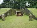 - Las tumbas: Varias de las esculturas megalíticas reflejan un culto funerario. Se encuentran construidas a manera de dolmen con guardianes y chamanes encargados de proteger el sarcófago o sepulcro.