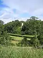 - Vista del jardín acuático mostrando el capricho arquitectónico gótico de la Torre Octogonal