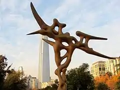 - Significado: Escultura cinética que representa dos brazos enfrentados al viento.