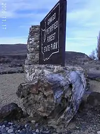 Alrededor de 1927, los trabajadores de la carretera notaron la madera petrificada, lo que llevó al geólogo George F. Beck a organizar las excavaciones.[5] El Cuerpo Civil de Conservación completó la excavación, construyó un pequeño museo y abrió el parque al público en 1938.