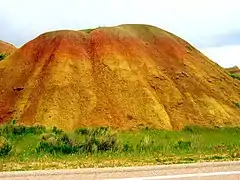 Estos sedimentos afloraron más tarde, después de un levantamiento de la región de los(Black Hills) que ocasionó la formación de las Montañas Rocosas. Las arcillas negras se erosionaron y formaron un suelo fósil de color amarillo.
