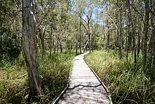 El paseo marítimo (Boardwalk), Parque Nacional de la Costa de Woodgate Burrum.
