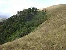 Los bosques montanos tropicales aparecen en elevaciones más altas y están entremezclados con praderas de montaña, formando un complejo de pradera-shola. Gran parte del bosque perenne original contiene ahora plantaciones de teca introducidas por el hombre. Bambúes y juncales aparecen en los bosques naturales. La cubierta forestal la proporcionan árboles de las especies Hopea parviflora, Mesua ferrea, Calophyllum tomentosum, Vateria indica, Cullenia excelsa y mango o melocotón de los trópicos, Machilus macrantha, Alstonia scholaris, Evodia meliaefolia, Ailanthus, algodonero rojo y eucalipto rosado. La zona es el hogar de Podocarpus wallichianus, una rara especie de conífera de la India meridional.[1]