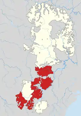 ![]() El parque nacional Montañas Azules, en rojo, como parte de la Región de las Montañas Azules, Patrimonio de la Humanidad | ||