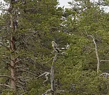 curruca mosquiteraEn los bosques de abetos se puede escuchar el canto de muchos paseriformes tales que el zorzal charlo (Turdus viscivorus), el zorzal alirrojo (Turdus iliacus), el zorzal común (Turdus philomelos), el escribano rústico (Emberiza rustica), el pinzón vulgar (Fringilla coelebs), el pinzón real (Fringilla montifringilla), el mosquitero musical (Phylloscopus trochilus), el mosquitero común (Phylloscopus collybita abietinus), la curruca mosquitera (Sylvia borin), el camachuelo picogrueso (Pinicola enucleator) y el arrendajo siberiano (Perisoreus infaustus).[M 8] El lagópodo común (Lagopus lagopus) también está presente, sobre todo en las zonas donde los abedules son numerosos. Por el contrario, los pinares son más pobres, sin embargo con varias especies de búhos, como el búho de Tengmalm (Aegolius funereus), el cárabo gavilán (Surnia ulula) y el búho real (Bubo bubo), o pájaros carpinteros como el pájaro carpintero negro (Dryocopus martius) y el pájaro carpintero de tres dedos (Picoides tridactylus). Estos bosques también albergan el carbonero común (Poecile cinctus), el papamoscas gris (Muscicapa striata), el ala de cera (Bombycilla garrulus) y el urogallo (Tetrao urogallus), entre otros. El cuervo común (Corvus corax) y varias rapaces como el águila real (Aquila chrysaetos), el águila pescadora (Pandion haliaetus), el cernícalo común (Falco tinnunculus), el halcón peregrino (Falco peregrinus) y el halcón de patas ásperas ( Buteo lagopus) anidan en el parque, especialmente en los barrancos del sur.[M 8]