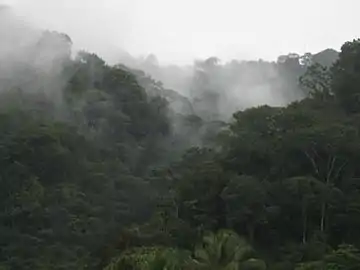 Los bosques de la zona se caracterizan tener árboles de gran altura y diámetro. Bajo ellos crece una densa variedad de especies de plantas, que se distribuyen a lo largo de un eje vertical que comienza en las capas más altas (de 30 a 50 m) y termina a nivel del suelo.