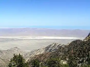 El camino hacia las montañas de la sierra se caracteriza por matorral desértico marítimo dominado por rosa silvestre, trompo, pitaya agria y cochal, pasando a chaparral dominado por palo blanco, toyón y fresnillo. Mientras que en la parte alta de la sierra es un bosque de pino oyamel con especies dominantes como el pino jeffrey, el abeto blanco, el pino y el pino dulce, así como vegetación de chaparral dominado por especies como el chamizo, encinillo, manzanita, chamizo colorado, lentisco y [[Hierba santa|yerba santa.]