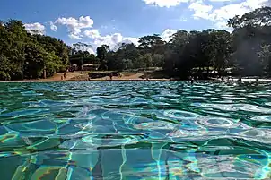 Las principales atracciones del parque son las piscinas. Ellas se formaron a partir de los pozos de agua, que surgieron a orillas del Córrego Campamento, por la extracción de arena hecha antes de la implantación de Brasilia. Para quienes gustan de caminar, el parque dispone de dos senderos de pequeña dificultad: la de la Capivara con duración de 20 minutos y la del Cristal Agua cuyo trayecto puede ser recorrido en 1 hora.