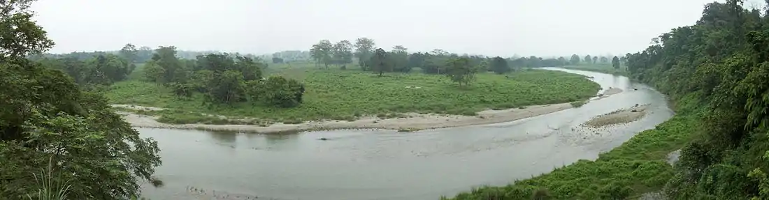 - Bosquecillos de bambú, vegetación de praderas de terai y juncos de ribera.