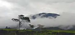 ![]() Vista del Gunung Gede desde una plantación de té cercana. | ||