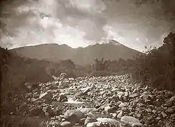 ![]() Vista del monte Salak desde un lecho rocoso de río (h. 1920). | ||