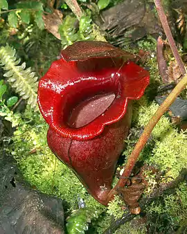 ![]() Vista de la Nepenthes jacquelineae en el Parque Nacional de Bukit Barisan. | ||